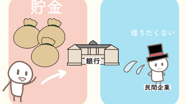 貯金する人がいて、銀行にお金がある時、銀行はお金を貸すことができます。