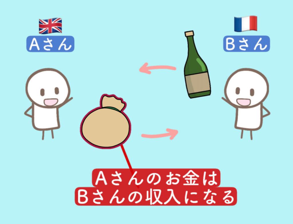 イギリス人のAさんが払ったお金は、フランス人Bさんの収入になります。