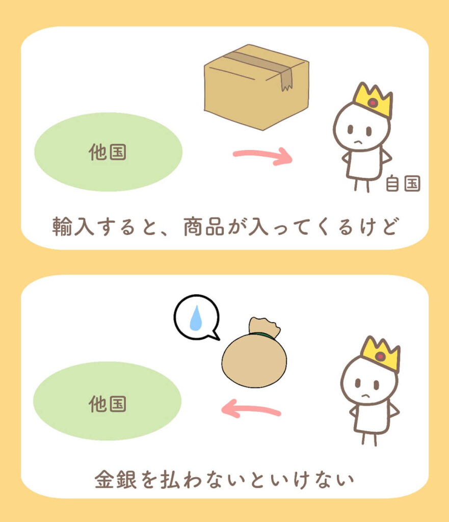 一方で、輸入をしたら、金銀が国外へ出て行ってしまいます。