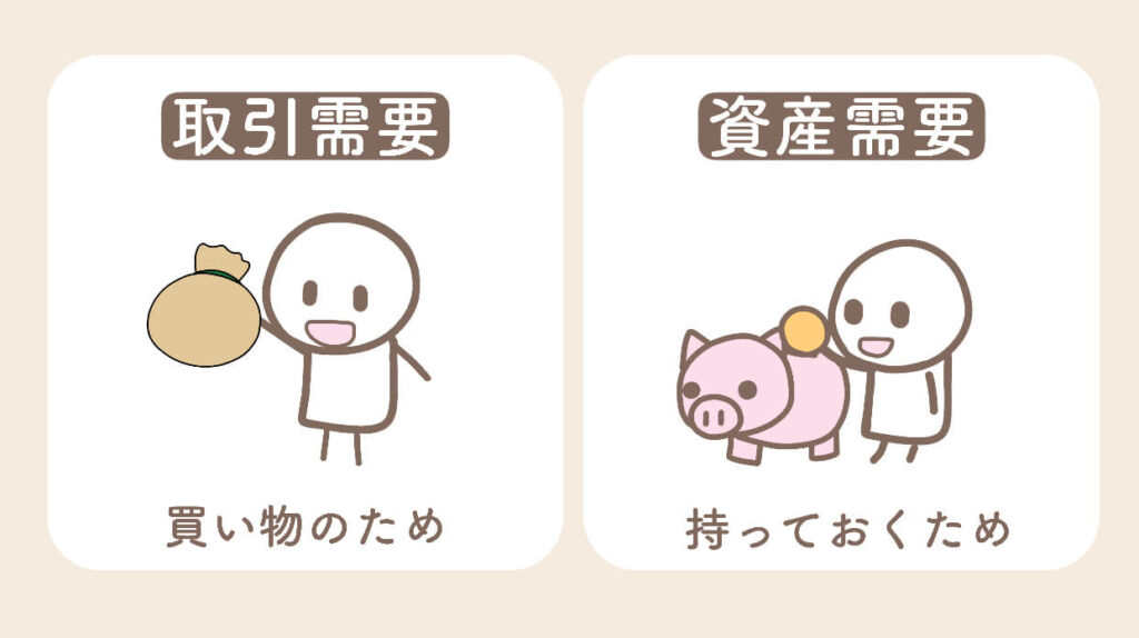「貨幣の取引需要」と「貨幣の資産需要」についてイラストで分かりやすく解説