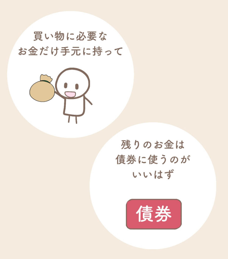 普通に考えて、買い物に必要なお金だけ手元に持って、それ以外のお金は、債券を買うことに買うのが、1番賢いように見えます。