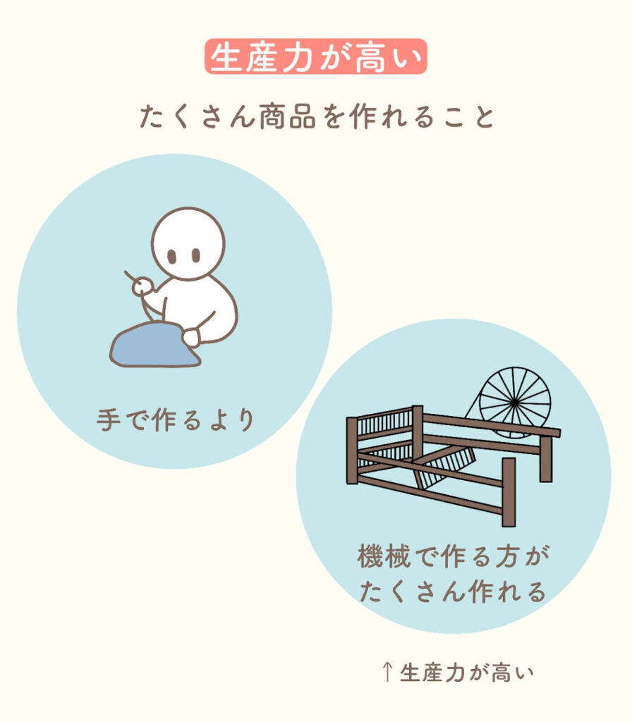 生産力とは、同じ時間でどれだけたくさん商品を作れるのか、というチカラです。