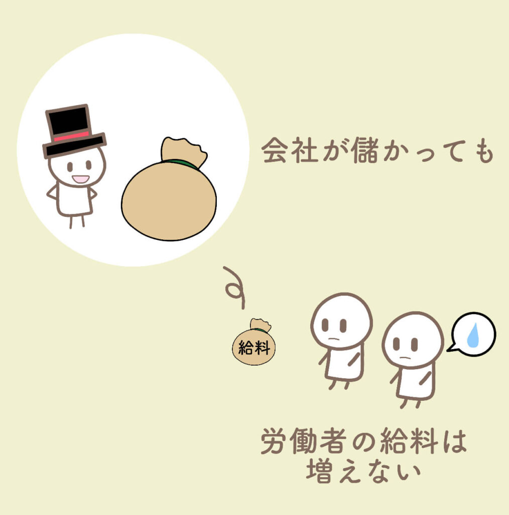 会社が儲かっても、労働者の給料の金額は変わりません。