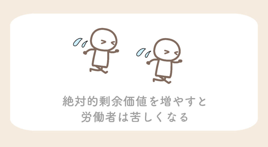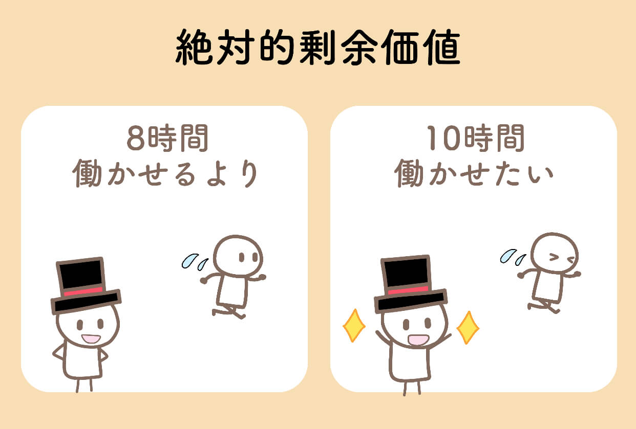 長時間働くことをマルクスの言い方で、「絶対的剰余価値を増やす」と言います。