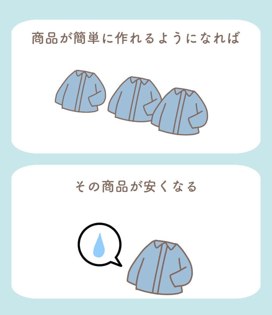 例えば、服が機械化すれば、服を安く買えます。