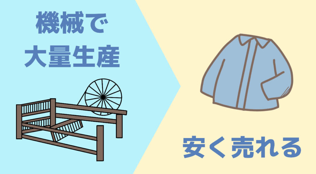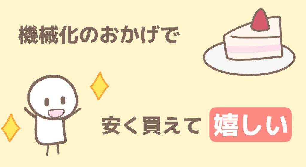 機械化をしたことで、世の中のいろいろな物が安く買えるようになります。