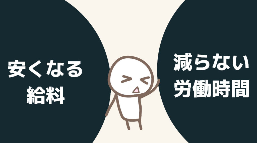労働者は、今までと同じ時間働いているのに、給料は安くなるのです。
