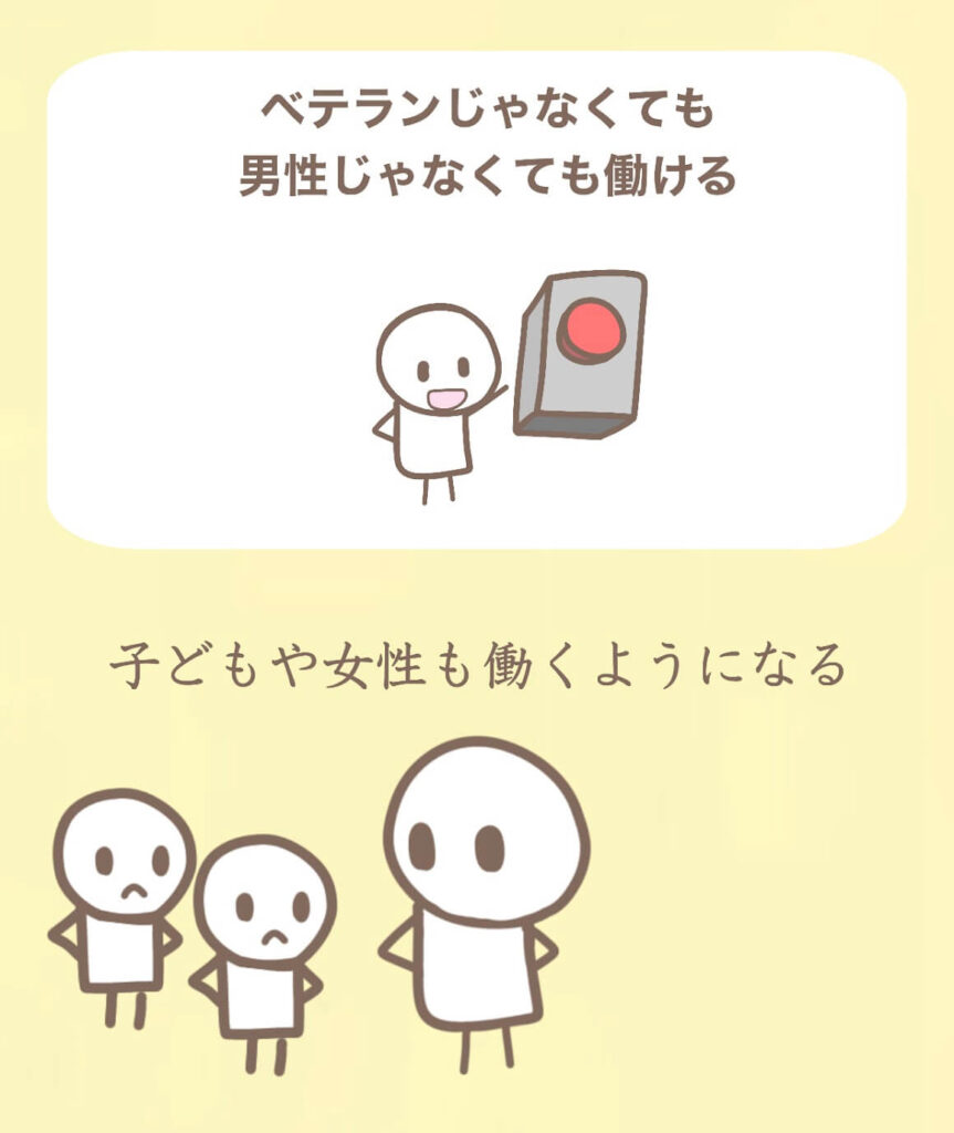労働者の仕事は、「ボタンを押すこと」などになります。