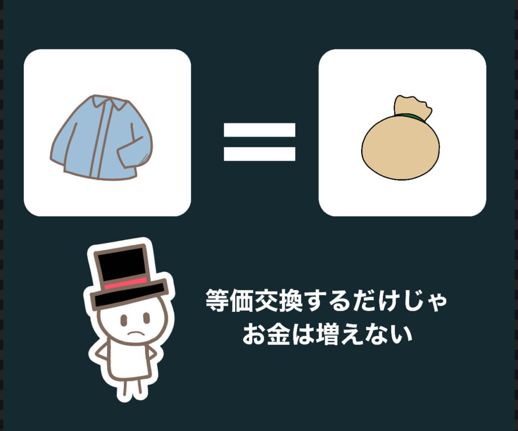 同じ価値のものを交換してるだけなので、商売だけではお金を稼げないのです。