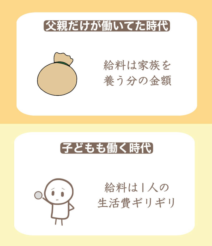 昔は、父親は、妻や子どもの分まで稼いでいました。