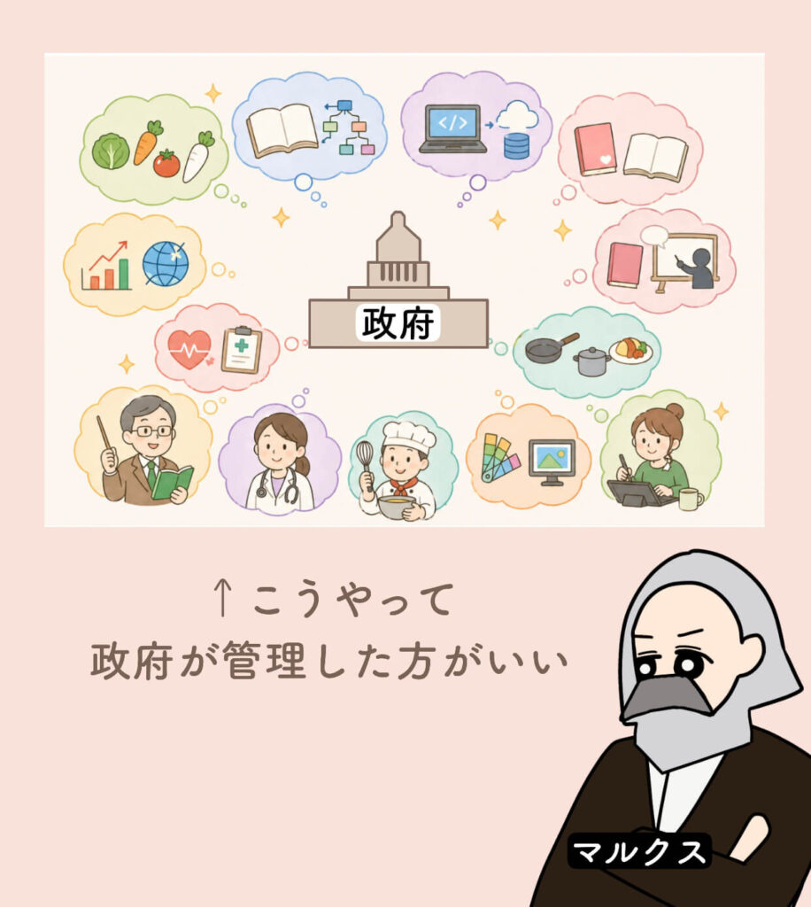 マルクスは、政府が全てを管理する世界を作ろうとしていました。