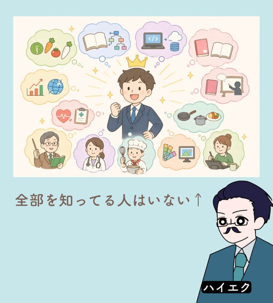 世の中の知識は、バラバラに分かれて、人々の頭の中に存在しています。