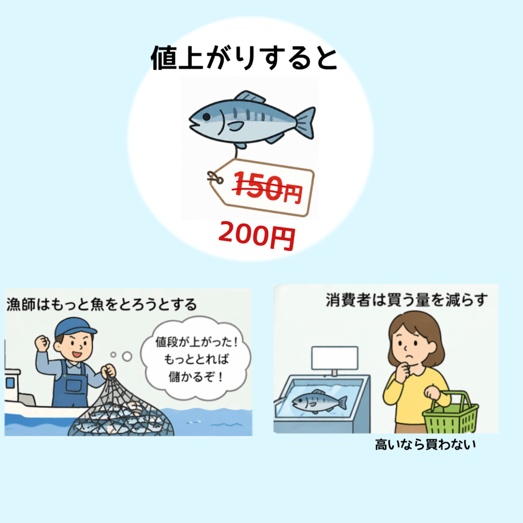 魚を売る人が増えて、買う人が減れば、ちょうどいい量に落ち着きます。