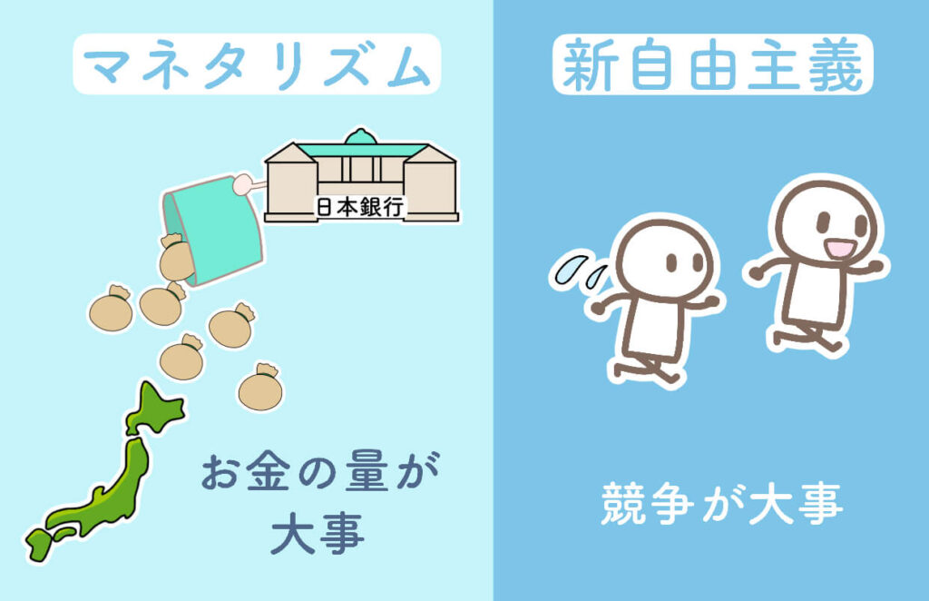 「マネタリスト」と「新自由主義者」は、何が違うのか見ていきます。