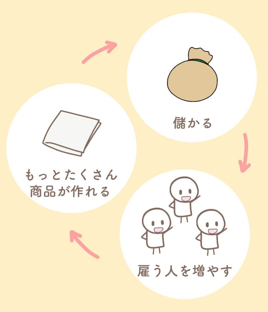 そして、人を雇ったり、原材料を買ったりして、もっと生産します。