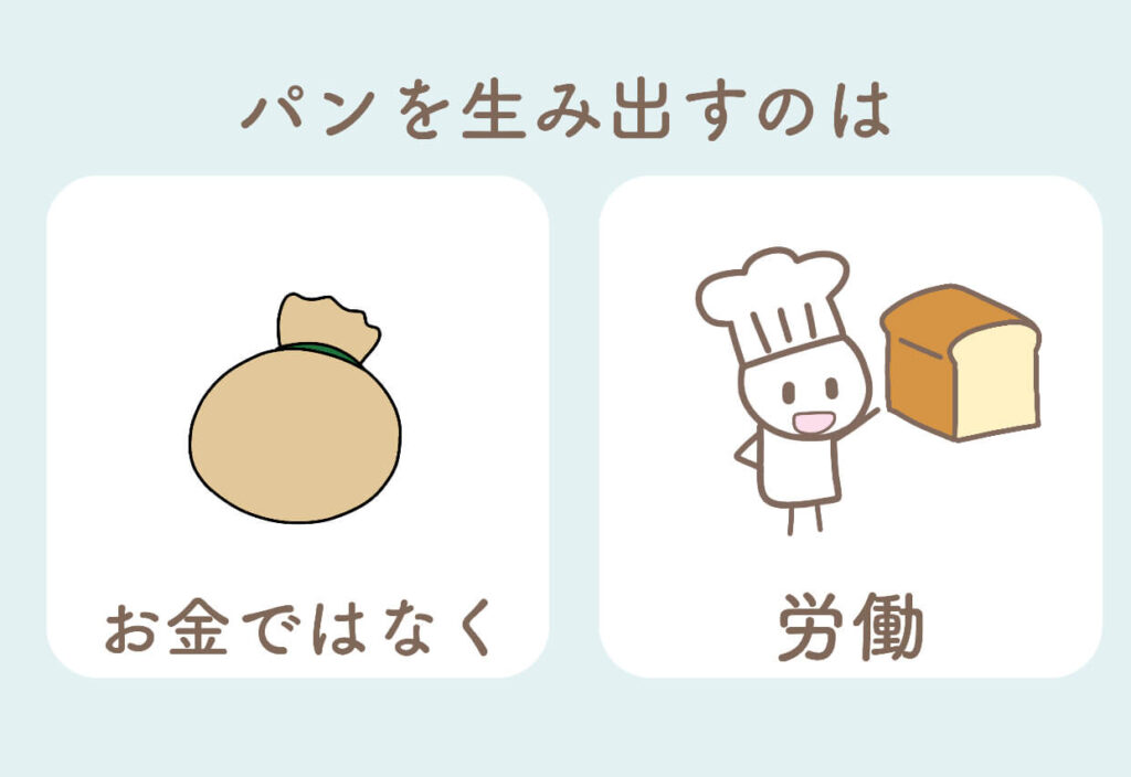 つまり、お金がパンを生んだのではなく、 人の労働がパンを生んだということです。