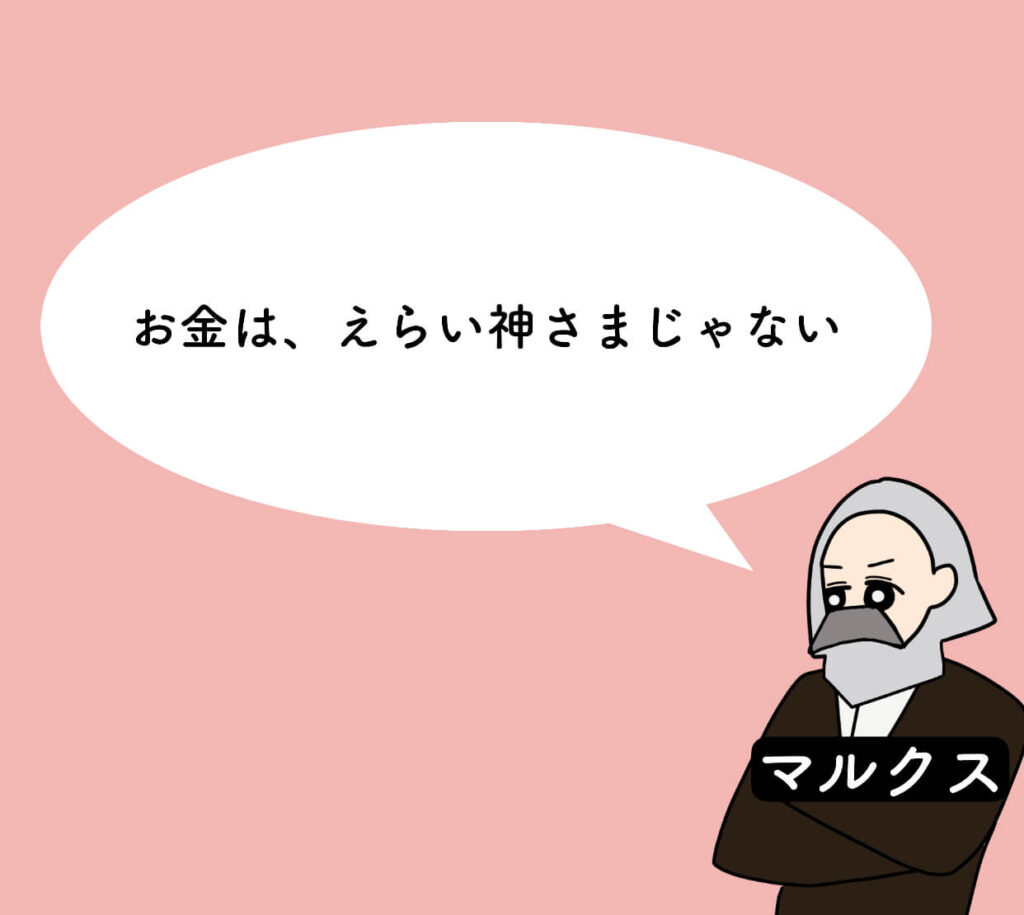 貨幣の物神的性格とは、お金にまるで神が宿って「万能の力」があると勘違いしてしまうことです。