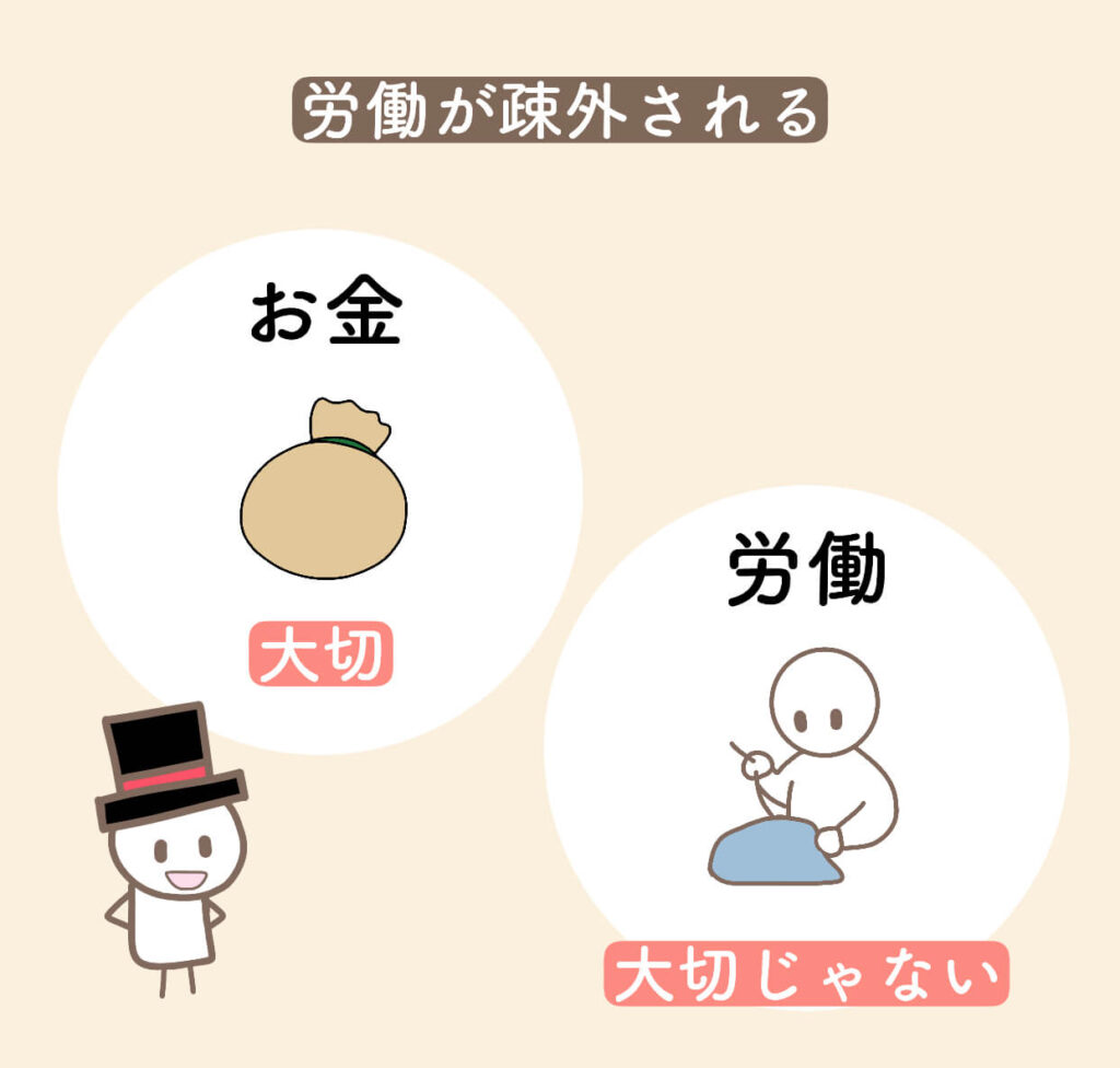 しかし、現実では、お金を大事にしすぎてる人が多すぎて、人間の労働が疎外されるようになっているのです。