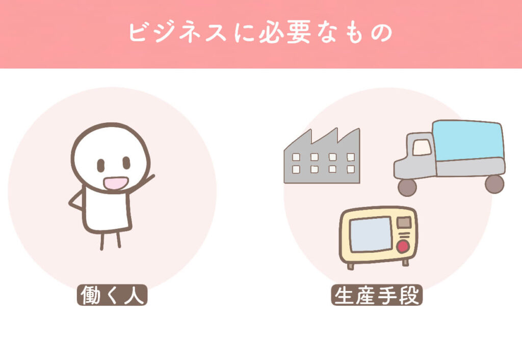 ビジネスには、「働く人」と「生産手段」が必要です。