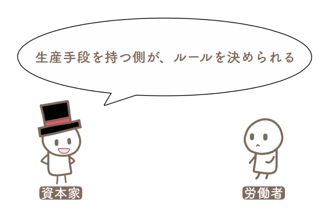 搾取が起きる原因は、生産手段を持つ側が、ルールを決められるからです。