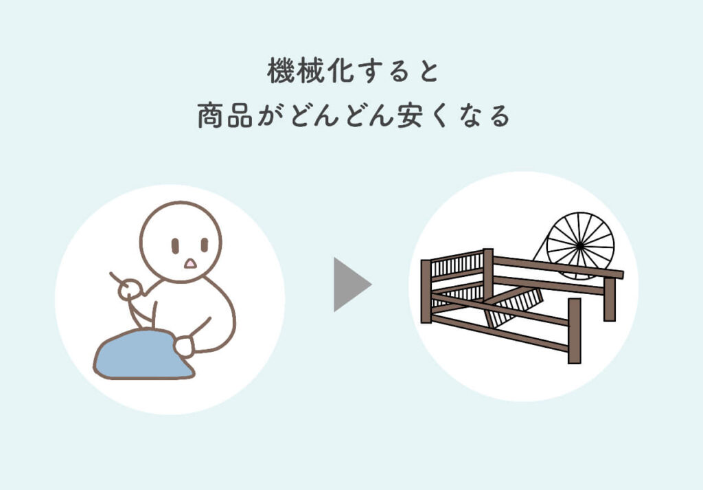 工場が機械化すると、商品がより早く作れるようになります。
