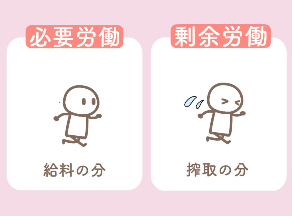 一方で、搾取される分を「剰余労働」と言います。