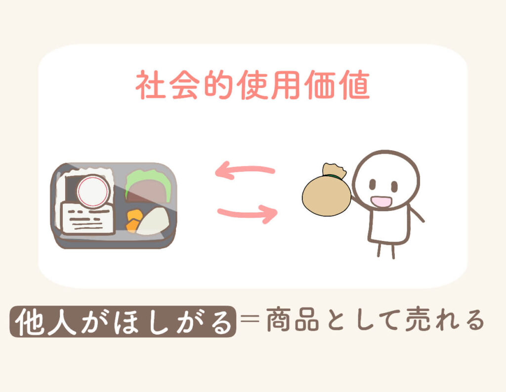 社会的使用価値とは、「他人が」欲しがったり、交換したがったりするということです。