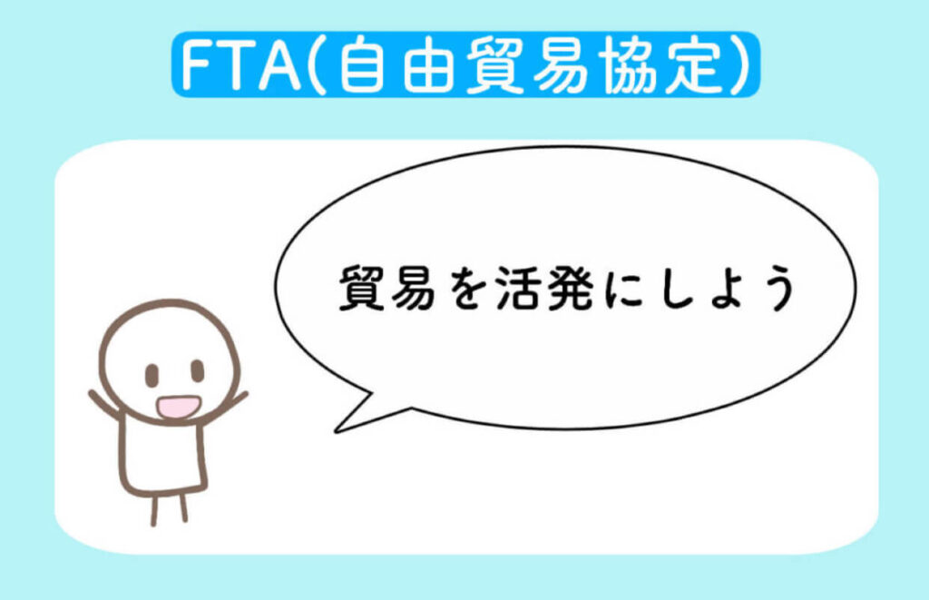 そして、自由貿易をもっと広げていこう!という協定を、「自由貿易協定(FTA)」といいます。
